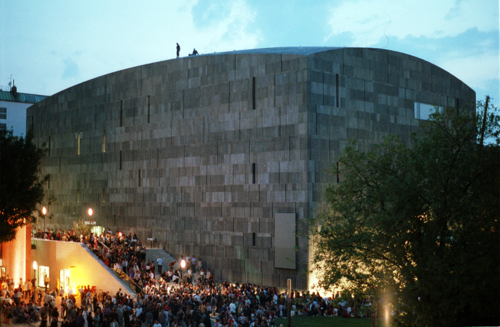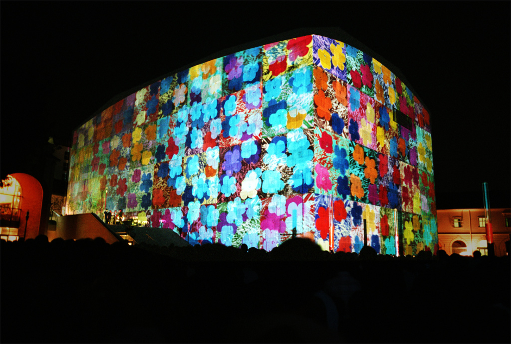 Glow Festival 2022 - children‘s project in & onto the Van Abbe museum encompassing 6000 children’s drawings of monsters covering the facades as well as inside walkways.